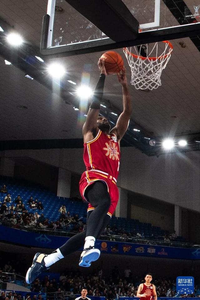 12月7日,山西汾酒队球员诺威尔在比赛中扣篮。新华社记者 肖艺九 摄