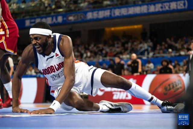 12月7日,广州朗肽海本队球员霍勒迪在比赛中摔倒。新华社记者 肖艺九 摄