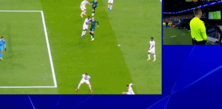 第3分钟,努内斯放倒维尼修斯,视频回放后裁判取消点球改判任意球