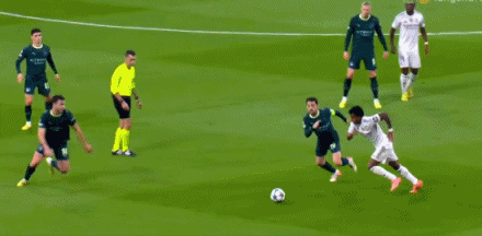 第11分钟,福登绊倒罗德里戈,得到一张黄牌