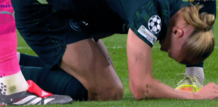 第48分钟,看着都痛!哈兰德被球闷中不可描述部位